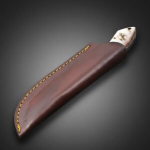Custom Handmade Damascus Full Tang Skinner Knife With Camle Bone Handal With CSheathow Leather