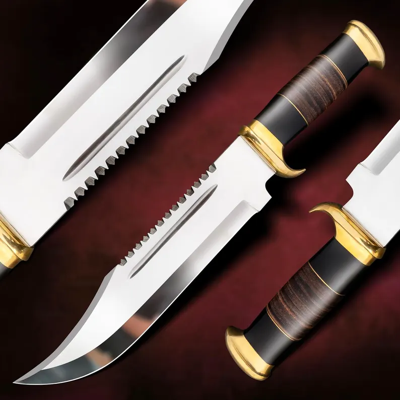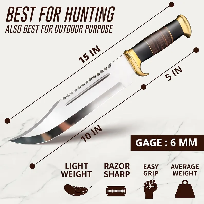 15” Crocodile Dundee Bowie Knife with Leather sheath – Hunting Survival knife for Camping, Luxury Groomsmen Gift Wedding Gift Best Gift