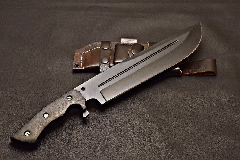 This custom handmade J2 steel Bowie knife is an excellent choice for outdoor enthusiasts, collectors, and anyone seeking a reliable and formidable knife. The black powder coating finish adds a touch of ruggedness, making it suitable for harsh environments.