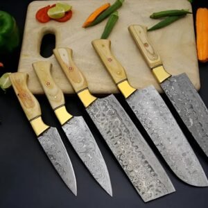 Damascus steel for unbeatable sharpness, durability, and style. Designed for chefs and home cooks alike, this set covers every essential cutting task, from slicing meats to peeling fruits.