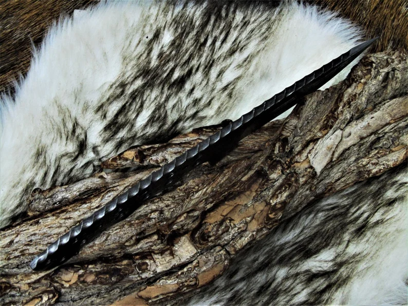 The knife is hand-forged from a single piece of steel, making each piece unique.