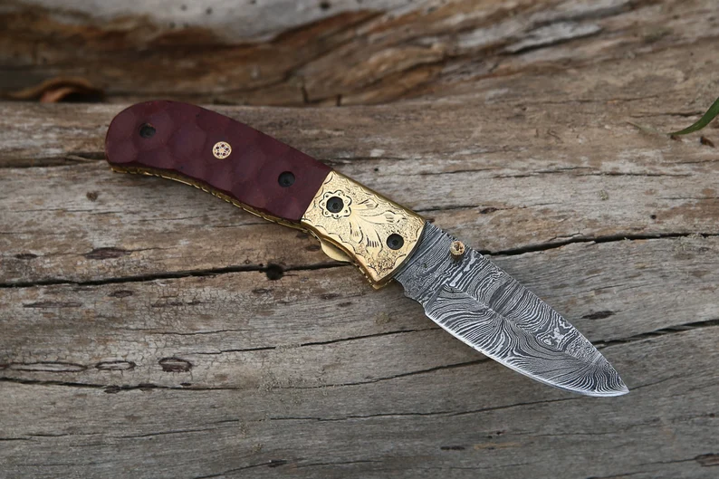 Be the first to review “Handmade Damascus Liner lock folding knife with Red Micarta Sheet Handle Pocket knife”