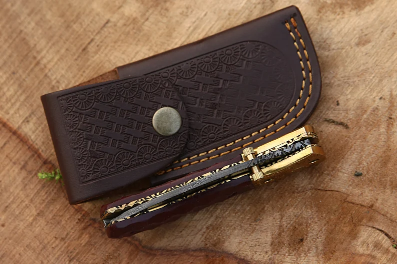 This Beautiful folding knife have Razor sharp cutting edge come with leather sheath.
