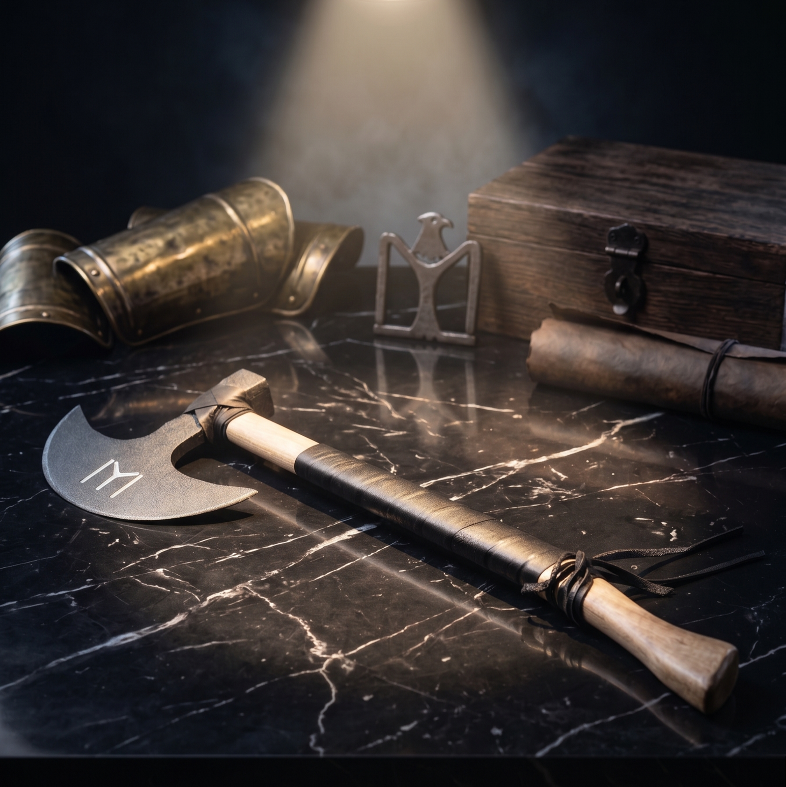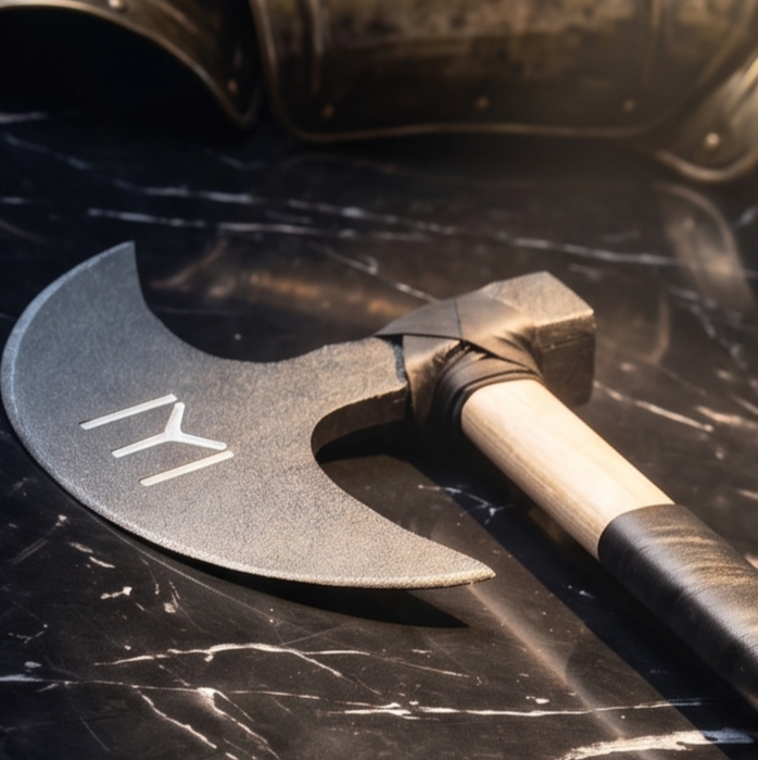 • Iconic IYI Engraving: The axe head features the legendary seal of the Kayi tribe, deeply engraved and finished in a striking white-on-black contrast.