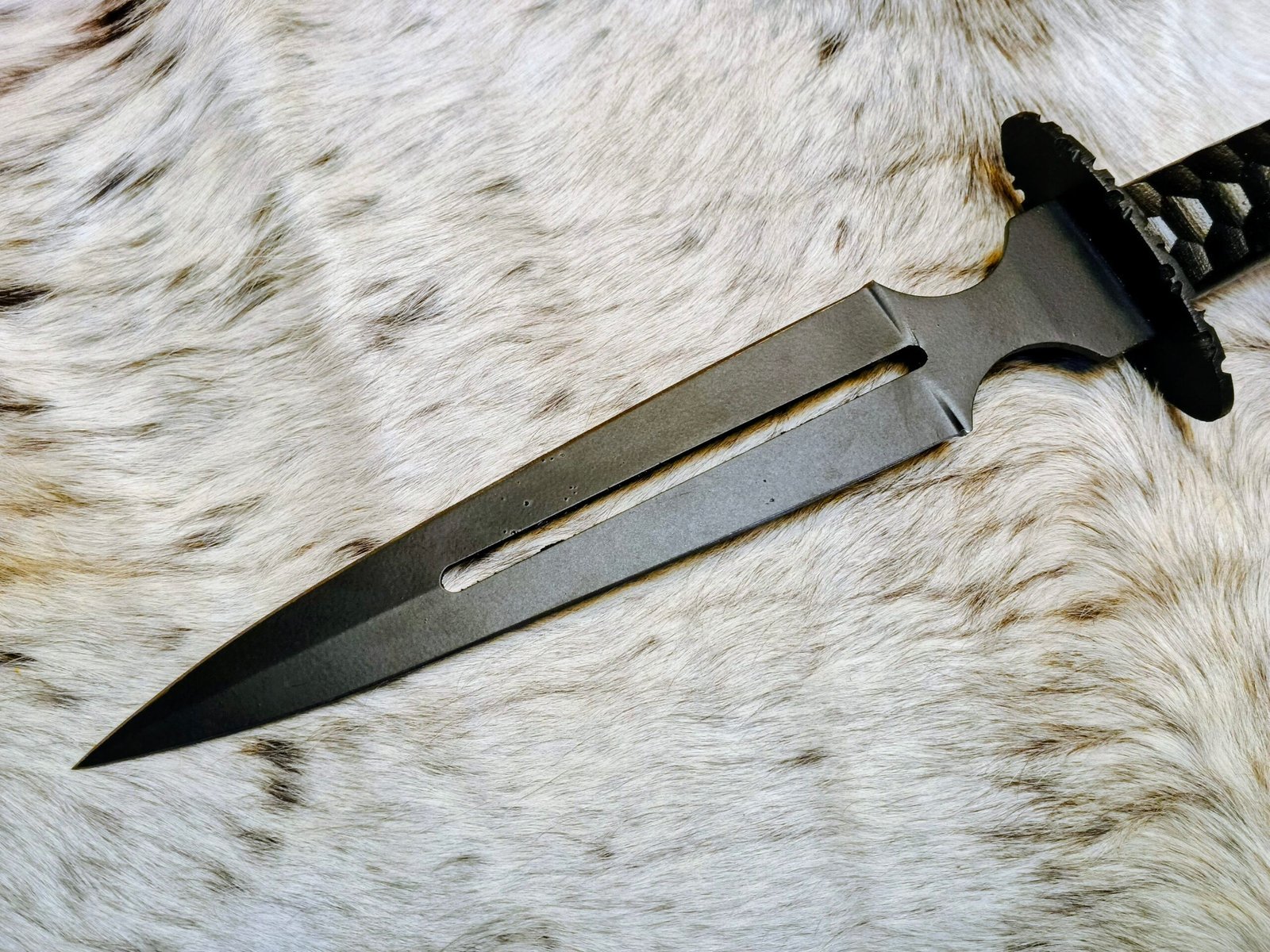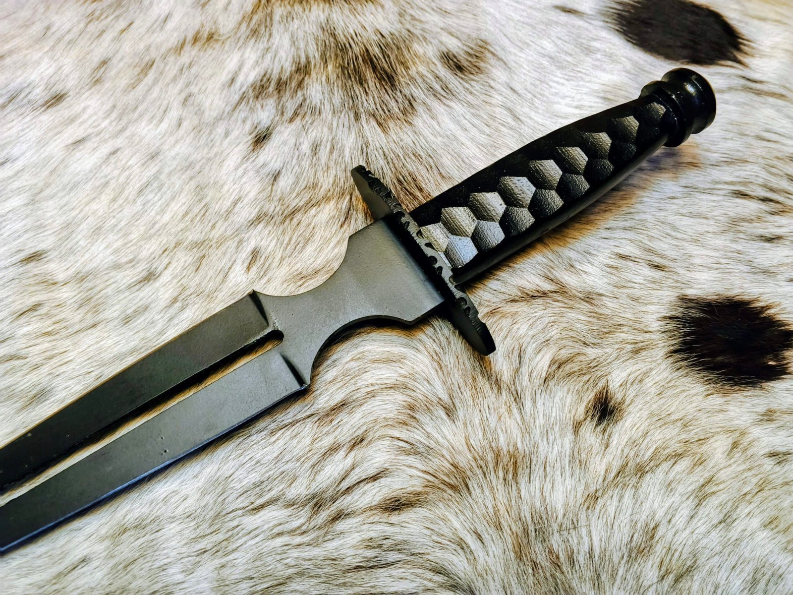Be the first to review “Hunting Double-Edge Dagger Knife – 10″ Blade with Powder Coating & Cow Leather Sheath”