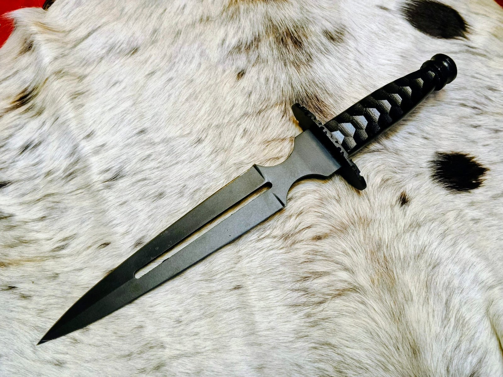 Crafted for both performance and style, this Hunting Double-Edge Dagger Knife features a razor-sharp 10-inch double-edge blade designed for maximum piercing power and precision. The blade is finished with a durable powder coating that enhances corrosion resistance and adds a rugged, tactical look.